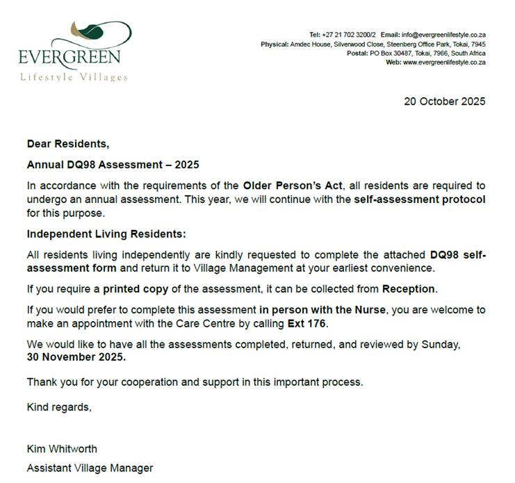 [Evergreen Muizenberg] MZB> Annual DQ98 Assessment