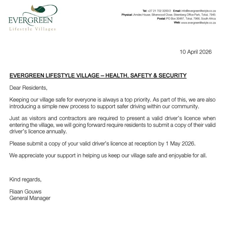 [Evergreen Muizenberg] MZB> Health, Safety & Security Protocol