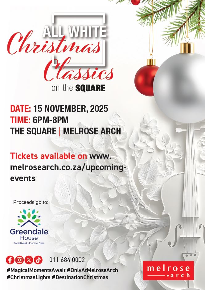 A Classical outdoor concert with The Chamber Orchestra of Johannesburg, conducted by Kutlwano Masote, featuring celebrated award-winning DJ Courtnae Paul. Concert starts18:00-20:00, on the Square. Proceeds will go to Greendale House Palliative and Hospice care