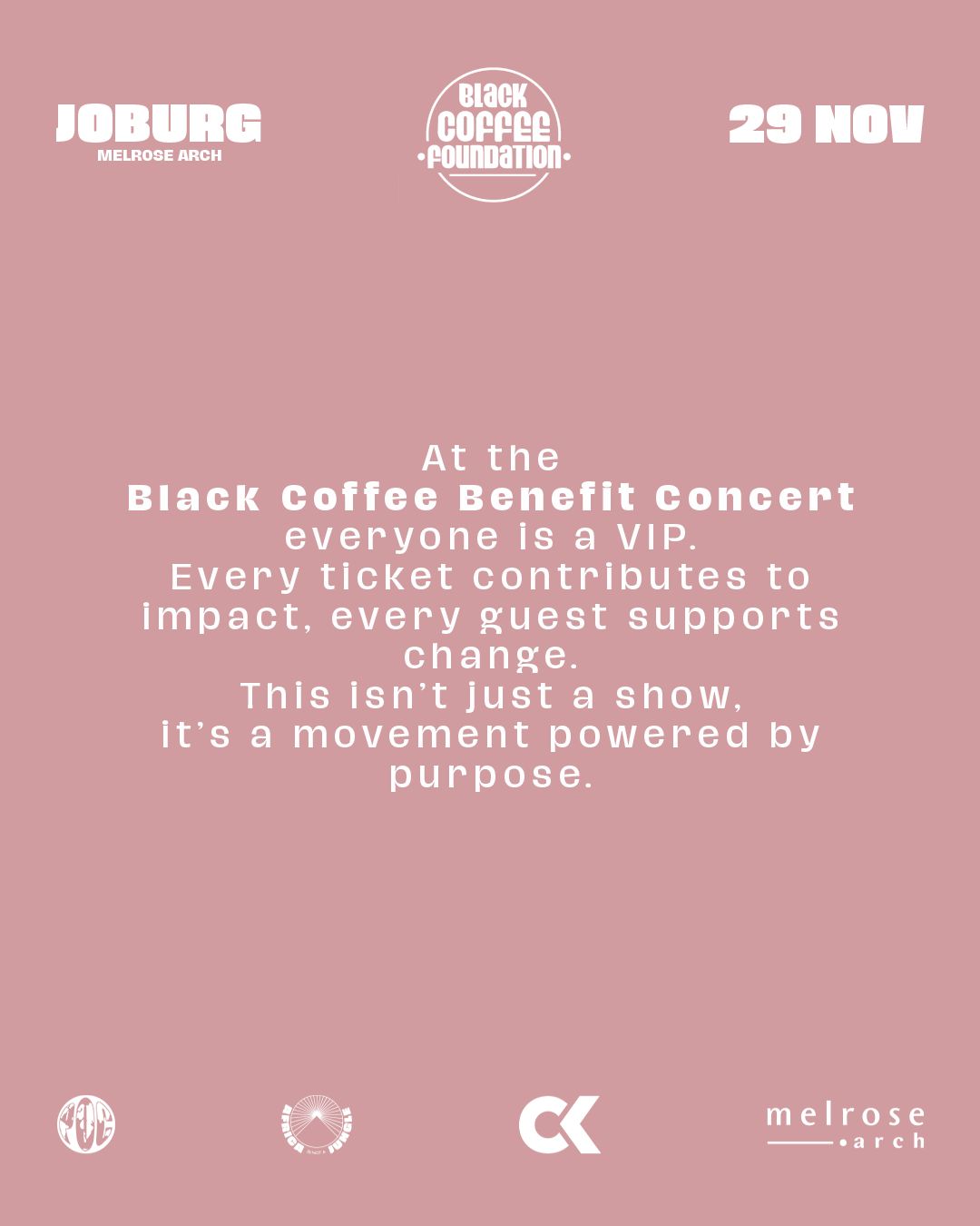 As part of Destination Christmas and our commitment to giving back, get ready for an unforgettable night as Melrose Arch hosts the Black Coffee Foundation Benefit Concert on Saturday, 29 November 2025.