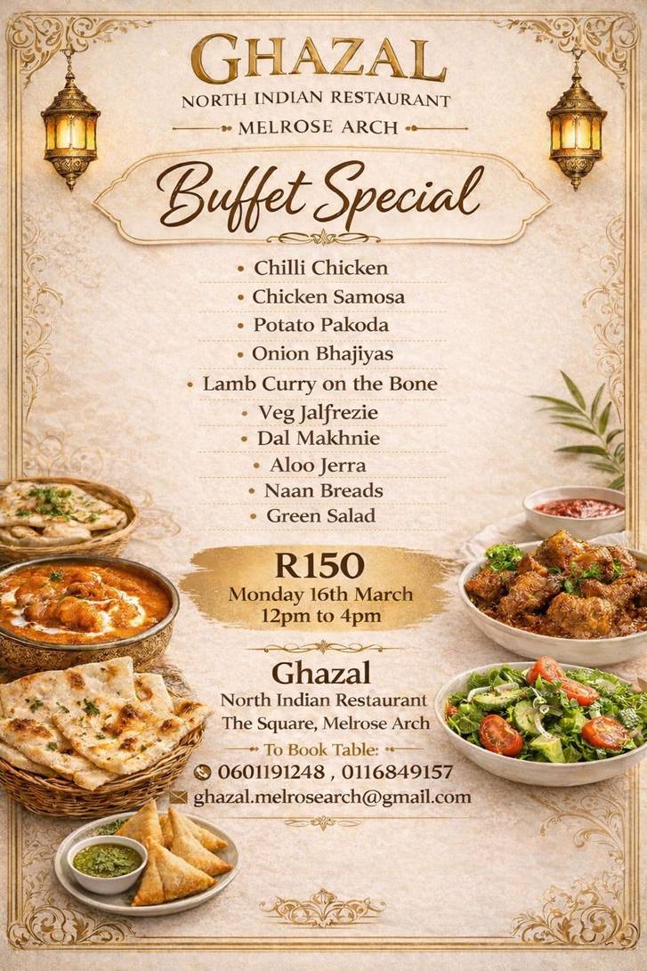 [Melrose Arch Tenant] Ghazal invites you to enjoy their Buffet Special